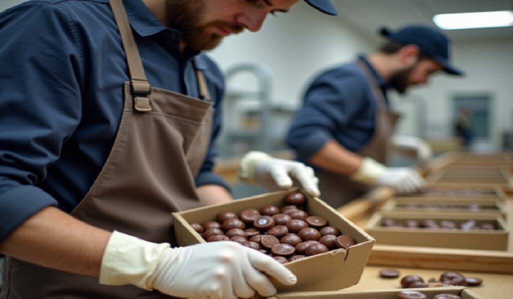 - Atención al detalle: El empaquetado de chocolates exige precisión. Los empleados deben estar atentos a la calidad de los productos y a que cada chocolate esté correctamente empaquetado, lo que requiere concentración y detalle.